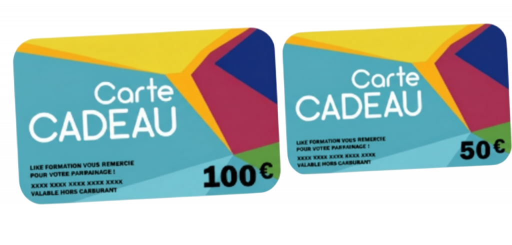 Une carte cadeau de 50€ pour le premier parrainage et une carte cadeau de 100€ pour le second parrainage